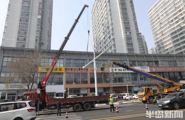 3月7日,青島嶗山區(qū)秦嶺路上,新型LED路燈已經(jīng)開始安裝。美觀大方的白色路燈,為路段增添了亮麗風(fēng)景。